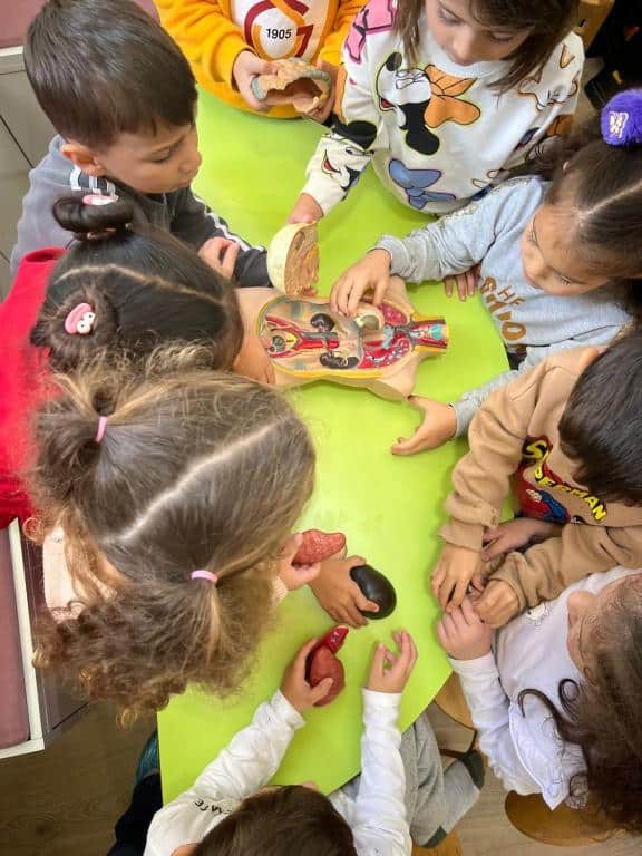 Ana sınıfı öğrencilerimiz, merak ve heyecanla insan vücudu modelini inceledi. Dokunarak ve deneyimleyerek öğrenme modelimiz sayesinde, miniklerimiz organların yerini ve işlevlerini eğlenerek keşfettiler. Erken yaşta bilime ve keşfetmeye olan ilgilerini uygulamalı eğitimle destekliyor, çocuklarımızın analitik düşünme becerilerini geliştiriyoruz.